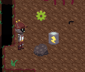 I really wanted to add some fadeouts to the cliffs and chasms, so that they don't look like a puddle of black soup. Even though design and idea are very simple, this addition forced me to change up a lot of my earlier work. Specifically the y-sorting got all messed up, which determines at which vertical position a sprite is drawn in front of the other (allowing the player to walk around a rock, for example). I have been relying a lot on z-indexing before, which are just different y-sorting layers always drawn in front of each other. Before, the lowest layer was always ground, and chasms have been drawn on top of that. But with stuff being able to do a more 3D-like fall into the pits, it should sometimes be drawn behind some ground tiles. So I had to get rid of z-indexing entirely and solve a lot of earlier problems again only through y-sorting. I'd say I'm about 80% happy with the overall result, with a lot of minor nooks I just have to ignore for now, for the sake of my sanity.